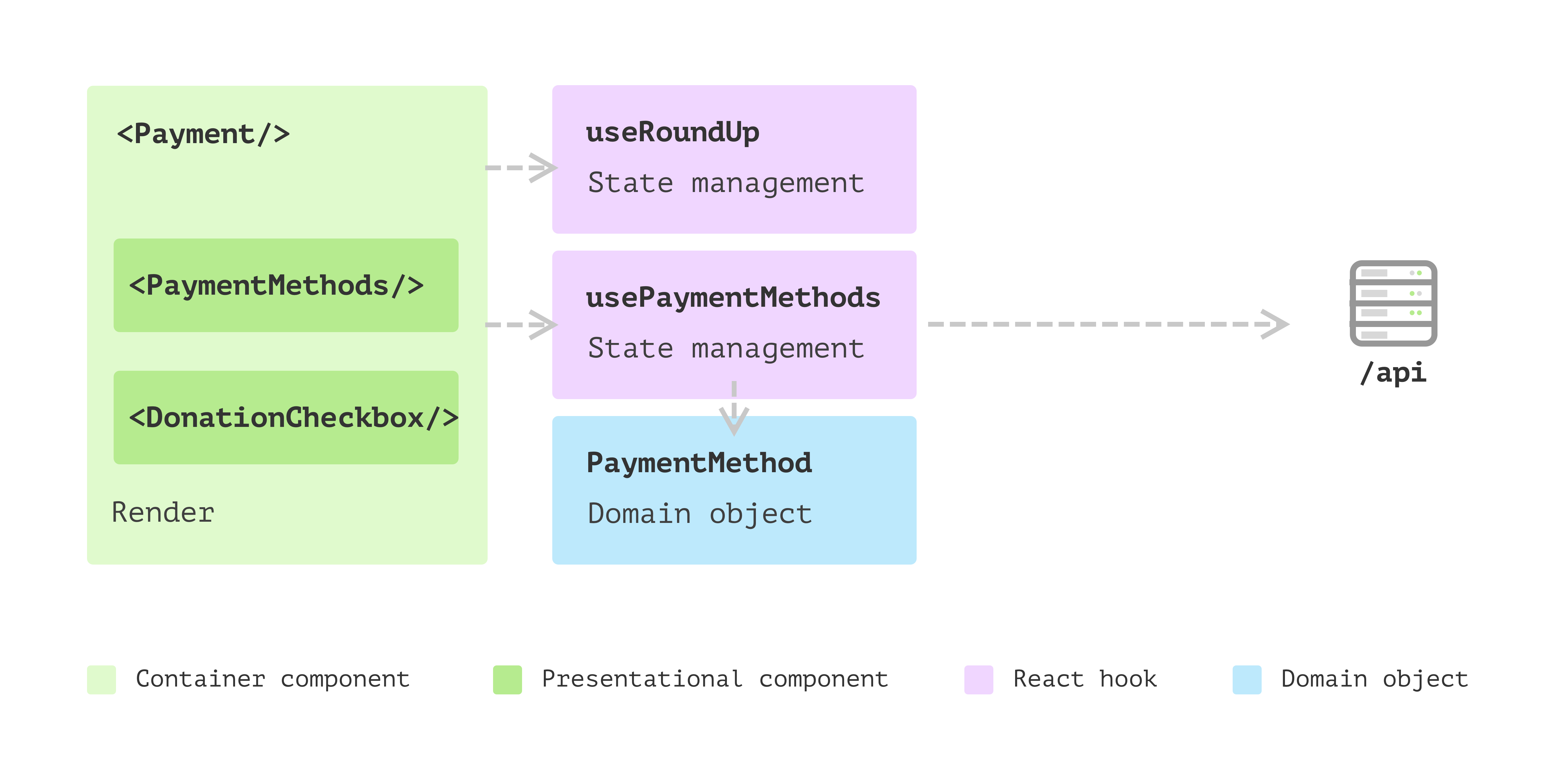 More often than not, people squeeze different things into React components or hooks to make the application work. This type of less-organised structure isn't a problem if the application is small or mostly without much business logic. However, as more business logic shifted to front-end in many cases, this everything-in-component shows problems. To be more specific, the effort of understanding such type of code is relatively high, as well as the increased risk to code modification.